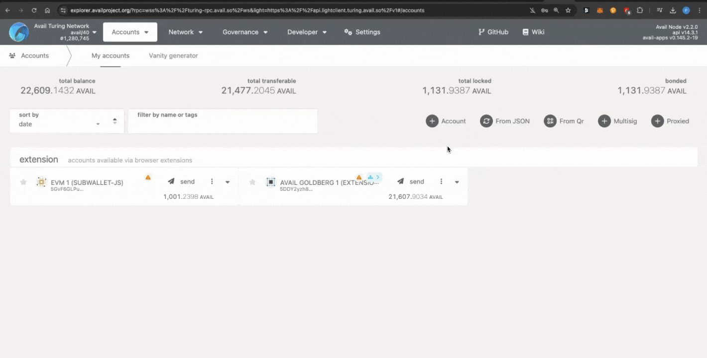 explorer can be used to add or import Avail accounts into the explorer.